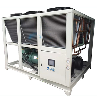 1、如果是風(fēng)冷式冷水機,可能是因長時間使用,翅片式冷凝器表面被灰塵覆蓋(或環(huán)境溫度過高[吸風(fēng)溫度超過35°]),引起散熱不良,這時 只需要把冷凝器表面灰塵清洗干凈(需要改善通風(fēng)條件,降低環(huán)境溫度)即可。