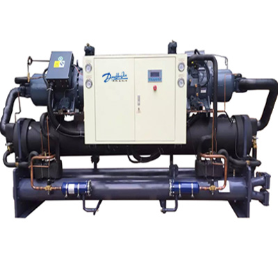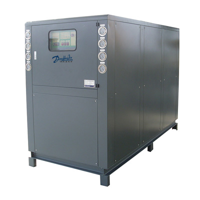 一般情況下,各行業(yè)使用渦旋式冷凍機(jī)和螺桿式冷凍機(jī)的較多。渦旋式冷凍機(jī)主要是由渦旋式壓縮機(jī),殼管式冷凝器,水箱盤(pán)管式蒸發(fā)器,循環(huán)水泵,熱力膨脹閥以及其它一些安全保護(hù)及能量調(diào)節(jié)裝置等組成,它有單機(jī)頭(單臺(tái)壓縮機(jī))和多機(jī)頭(多臺(tái)壓縮機(jī))之分,采用多機(jī)頭可以擴(kuò)大冷量調(diào)節(jié)范圍,提高制冷效率,實(shí)現(xiàn)節(jié)能運(yùn)行。