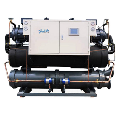 螺桿式冷凍機(jī)則是由螺桿式壓縮機(jī)、殼管式蒸發(fā)器/冷凝器、熱力膨脹閥、電控系統(tǒng)以及其他控制元件組成,具有基建造價(jià)低、運(yùn)行費(fèi)用低、安裝調(diào)試方便、運(yùn)行維修費(fèi)用低等優(yōu)點(diǎn)。它的制冷功率大,也有用戶根據(jù)喜好不同而采用單機(jī)頭或者雙機(jī)頭制作。