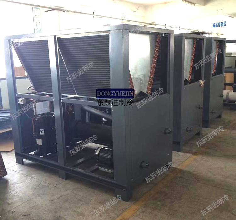 東躍進(jìn)制冷經(jīng)過(guò)十幾年的發(fā)展,雖然風(fēng)冷式箱式冷水機(jī)作為較簡(jiǎn)單的機(jī)型,但是使用的客戶還是非常多的,我們也對(duì)其進(jìn)行了多次升級(jí),機(jī)組在性能上更加的穩(wěn)定,故障率也非常低,多壓縮機(jī)制冷系統(tǒng)設(shè)計(jì)使使用比較節(jié)能。雖然每個(gè)廠家的風(fēng)冷箱式冷水機(jī)外觀不一樣,但實(shí)際上配置都相差無(wú)幾,都是由渦旋式壓縮機(jī),殼管式或水箱盤管式蒸發(fā)器,翅片式冷凝器,水泵,風(fēng)機(jī),膨脹閥,過(guò)濾器,高低壓壓力表,電控系統(tǒng),機(jī)箱等組成。