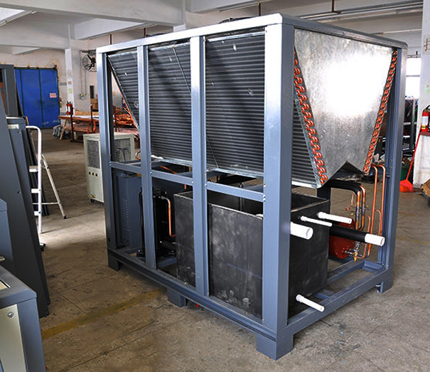 風(fēng)扇繼電器燒壞。解決方法:調(diào)換繼電器。電線接線松動。解決方法:檢查并且緊固電線接線處。風(fēng)扇電念頭軸承卡逝世。解決方法:調(diào)換軸承。風(fēng)冷冷水機(jī)組跟水冷冷水機(jī)組的功能是一樣,都是制冷降溫,重要不同點在于制冷方法不同。